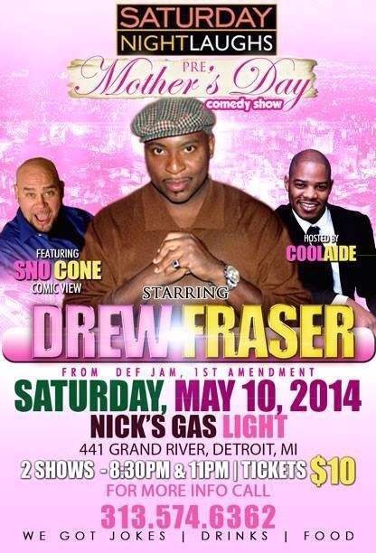 One of my resident gig is for Detroit Comedian Coolaide. He is funny cat that has traveled the world as a comedian just as I as a dj. We come together every second Saturday for Saturday Night Laughs a staple in Detroit comedy. He flies in a headline comedian every month and its always cool to meet famous and up and coming comedians. I have to be on point with the music when its a part of their act or get clowned. A lot of things I do with the comedians are improved and I love coming through every time.